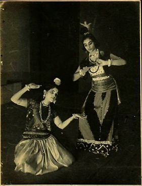 শান্তিনিকেতনে চণ্ডালিকার নৃত্যনাট্যাভিনয়ে নন্দিতা দেবী এবং মৃণালিনী স্বামীনাথন। চিত্রঋণ: রবীন্দ্রভবন ফটো আর্কাইভ।
